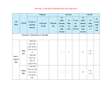 BẢN ĐẶC TẢ KĨ THUẬT ĐỀ KIỂM TRA GIỮA HỌC KÌ II Năng lực Số ý/câu Câu hỏi TN TN TN nhiều TN TN trả nhiều TN Nội Tư duy và trả lời Cấp độ Giải quyết Mô hình phương đúng lời phương đúng dung lập luận ngắn vấn đề hóa án lựa sai ngắn án lựa sai (số toán học (số chọn (số ý) (số câu) chọn ý) câu) (số câu) (số câu)