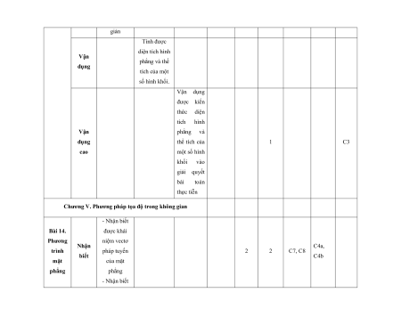 Chương V. Phương pháp tọa độ trong không gian Số lệnh hỏi 4 4 3 1 12 Số điểm 1 1 1 0,5 3,5 12 7, 8 9, 10, 11 Câu số/Phần 4c 4a, 4b 4d 6 (I, II, III) 5 I, II I, II III I, II, III Thành tố NL TD QGVĐ GQVĐ MHH Tổng điểm 3,25 3,25 2 1,5 10 Lưu ý:
