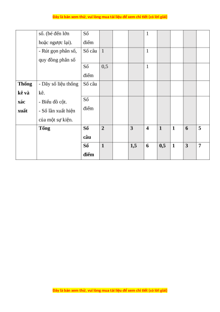 - Rút gọn phân số, Số câu 1 1 quy đồng phân số Số 0,5 1 điểm