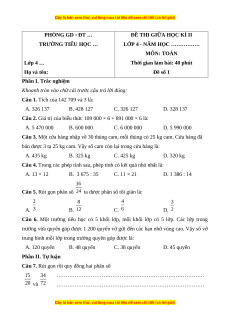 LỚP 4 - NĂM HỌC ……………. MÔN: TOÁN Lớp 4 …