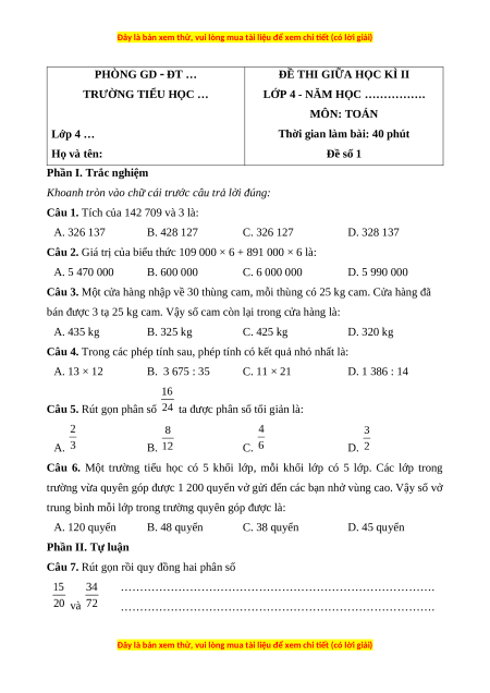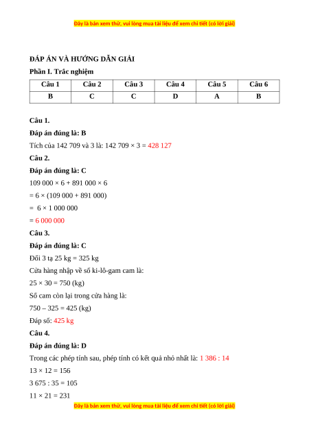 Câu 1. Tích của 142 709 và 3 là: A. 326 137 B. 428 127 C. 326 127 D. 328 137