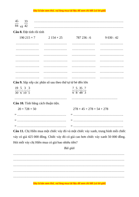 Câu 8. Đặt tính rồi tính 190 215 × 7 2 154 × 25 787 236 : 6 9 030 : 42 ………………… ………………… ………………… ………………… ………………… ………………… ………………… ………………… …………………. …………………. …………………. …………………. …………………. …………………. …………………. …………………. …………………. …………………. …………………. …………………. …………………. …………………. …………………. …………………. …………………. …………………. …………………. ………………….