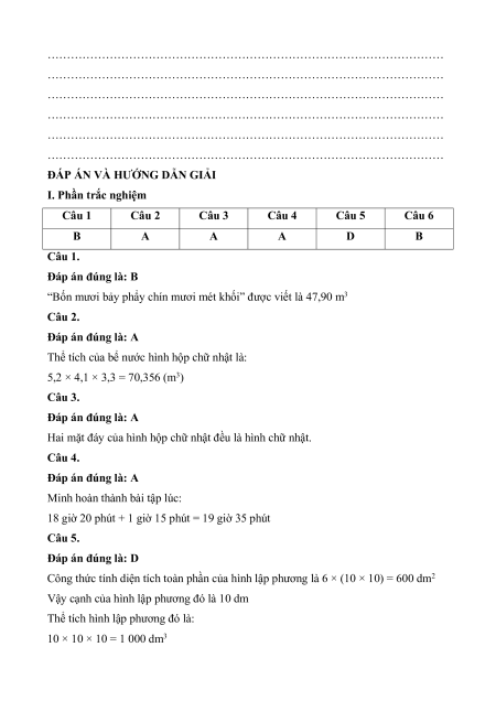 ĐÁP ÁN VÀ HƯỚNG DẪN GIẢI I. Phần trắc nghiệm Câu 1 Câu 2 Câu 3 Câu 4 Câu 5 Câu 6 A B D C A A