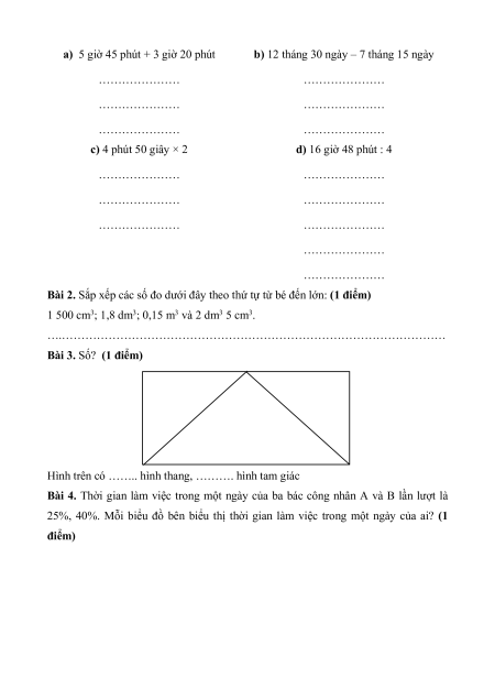 Bài 2. Sắp xếp các số đo dưới đây theo thứ tự từ bé đến lớn: (1 điểm)