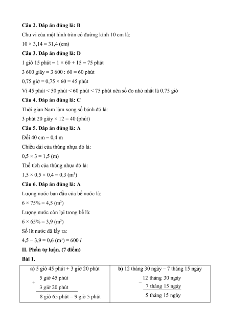 giây. Vậy thời gian Nam làm xong số bánh đó là: (0,5 điểm) A. 30 phút B. 35 phút C. 40 phút D. 45 phút