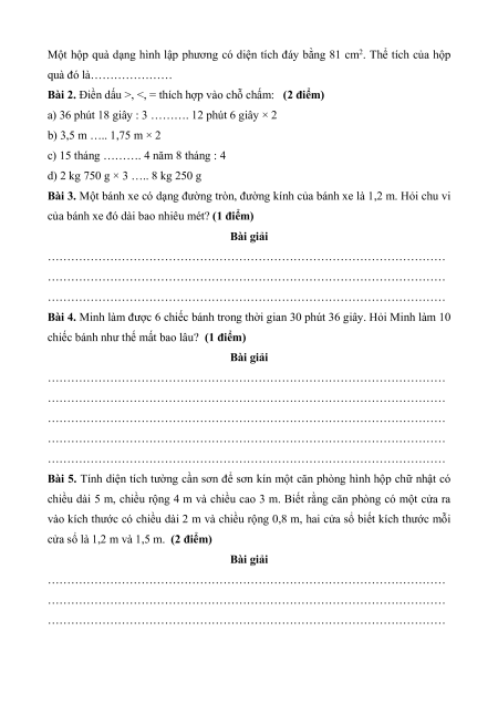 ……………………………………………. Môn: Toán – Lớp 5 Lớp:…………. .