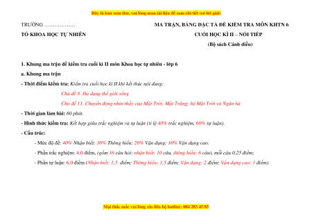 1. Khung ma trận đề kiểm tra cuối kì II môn Khoa học tự nhiên - lớp 6 a. Khung ma trận