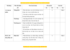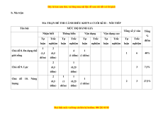 MỨC ĐỘ ĐÁNH GIÁ Tổng số ý/ câu Tổng Nhận biết Thông hiểu Vận dụng Vận dụng cao % Tự Trắc Tự Trắc Tự Trắc Tự Trắc Tự Trắc điểm luận nghiệm luận nghiệm luận nghiệm luận nghiệm luận nghiệm 1 2