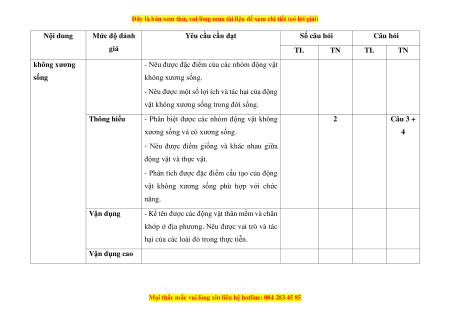 - Nhận biết được các nhóm động vật không 1 Câu 2 dạng động vật