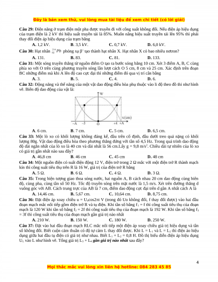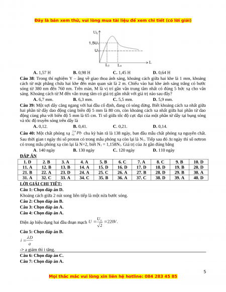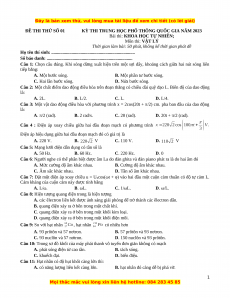 Bài thi: KHOA HỌC TỰ NHIÊN; Môn thi: VẬT LÝ