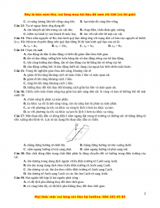 Câu 15: Trong thí nghiệm giao thoa ánh sáng, khoảng vân sẽ