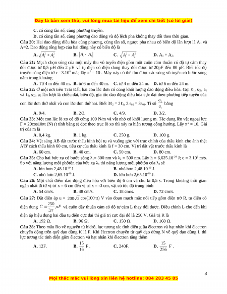 Câu 21: Mạch chọn sóng của một máy thu vô tuyến điện gồm một cuộn cảm thuần có độ tự cảm thay