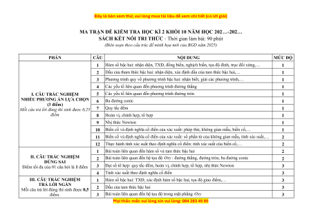 MA TRẬN ĐỀ KIỂM TRA HỌC KÌ 2 KHỐI 10 NĂM HỌC 202…-202…