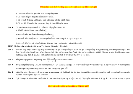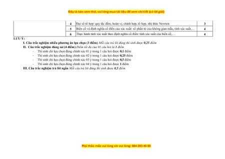 Mỗi câu trả lời đúng thí sinh được 0,25 7 Quy tắc đếm 1 điểm 8