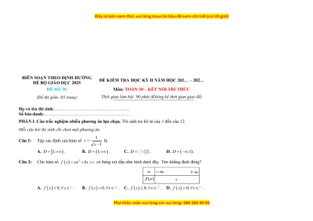 SÁCH KẾT NỐI TRI THỨC - Thời gian làm bài: 90 phút