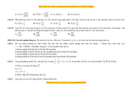 NHIỀU PHƯƠNG ÁN LỰA CHỌN 6 Ba đường conic 1 (3 điểm)