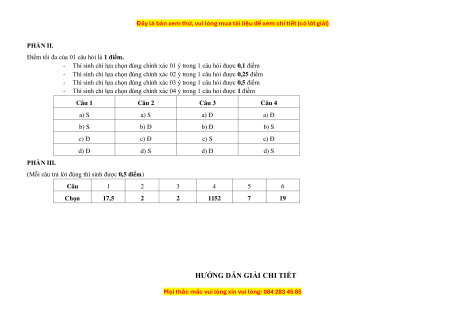 Thí sinh chỉ lựa chọn đúng chính xác 02 ý trong 1 câu hỏi được 0,25 điểm -