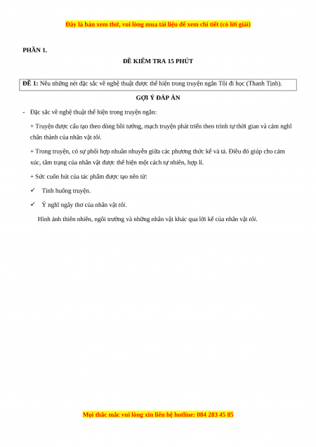 ĐỀ 1: Nêu những nét đặc sắc về nghệ thuật được thể hiện trong truyện ngắn Tôi đi học (Thanh Tịnh). GỢI Ý ĐÁP ÁN