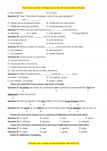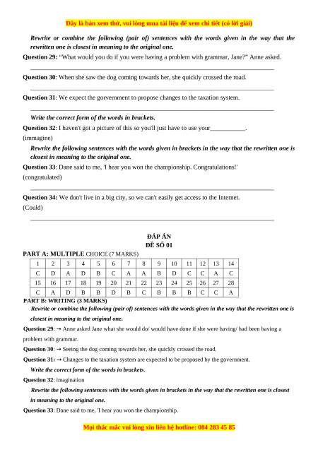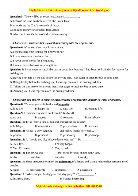 Đây là bản xem thử, vui lòng mua tài liệu để xem chi tiết (có lời giải)