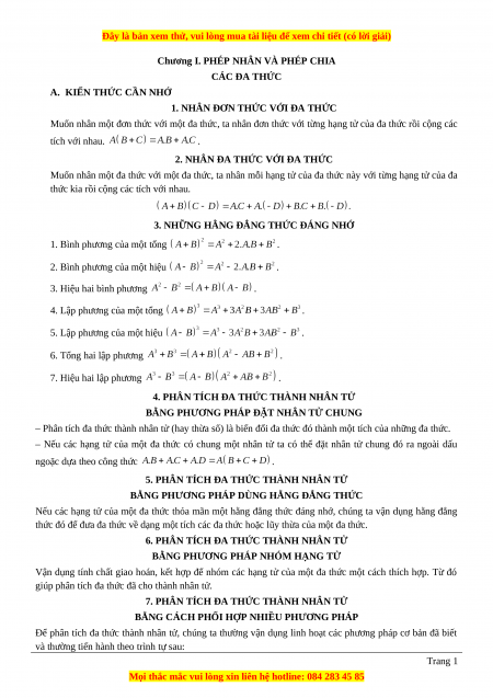 Chương I. PHÉP NHÂN VÀ PHÉP CHIA CÁC ĐA THỨC