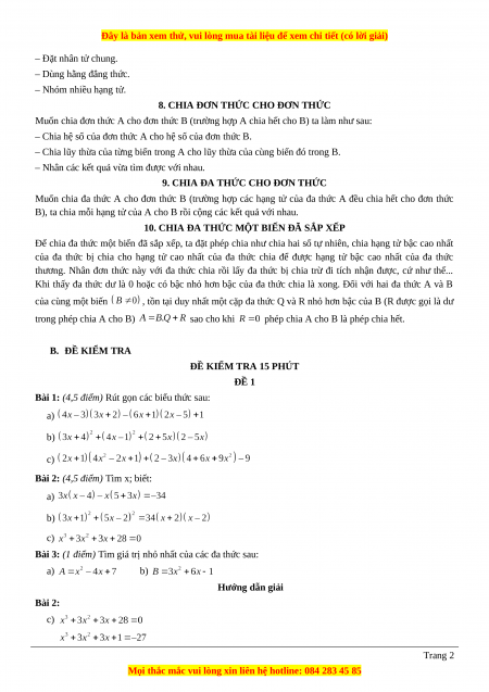 8. CHIA ĐƠN THỨC CHO ĐƠN THỨC