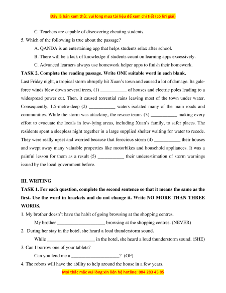 TASK 2. Complete the reading passage. Write ONE suitable word in each blank.