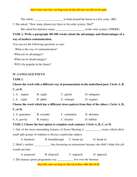 - Will it be popular in the future? IV. LANGUAGE FOCUS TASK 1.