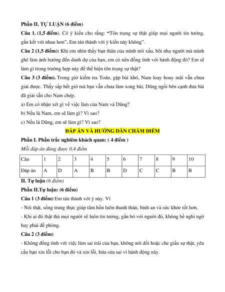 Câu 1. (1,5 điểm). Có ý kiến cho rằng: “Tôn trọng sự thật giúp mọi người tin tưởng,