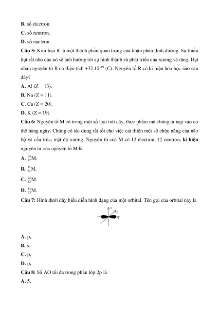 Câu 1: Hạt nào sau đây nằm ở lớp vỏ nguyên tử? A. Hạt neutron.