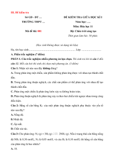 ĐỀ KIỂM TRA GIỮA HỌC KÌ I TRƯỜNG THPT … Năm học: …. Môn: Hóa học 11 Mã đề thi: 001