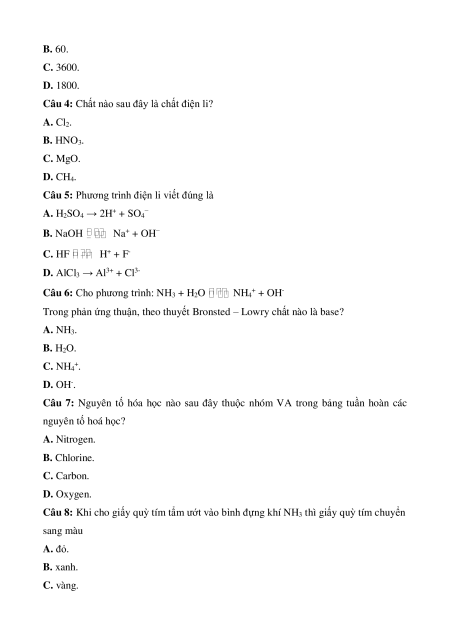 PHẦN I. Câu trắc nghiệm nhiều phương án lựa chọn. Thí sinh trả lời từ câu 1 đến