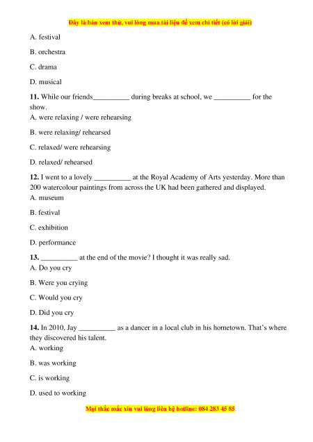 13. __________ at the end of the movie? I thought it was really sad. A. Do you cry B. Were you crying C. Would you cry D. Did you cry