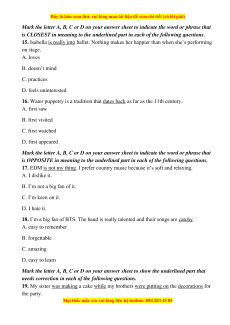 Mark the letter A, B, C or D on your answer sheet to indicate the correct answer to