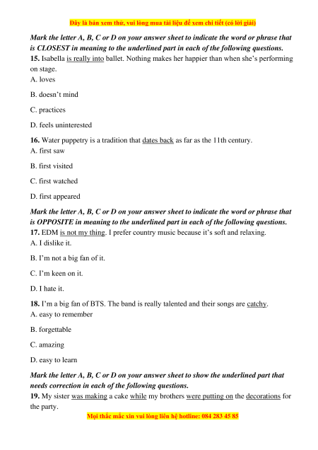 Chúng tôi đảm bảo đủ số lượng đề đã cam kết hoặc có thể nhiều hơn, tất cả có BẢN WORD, LỜI GIẢI CHI TIẾT và tải về dễ dàng.