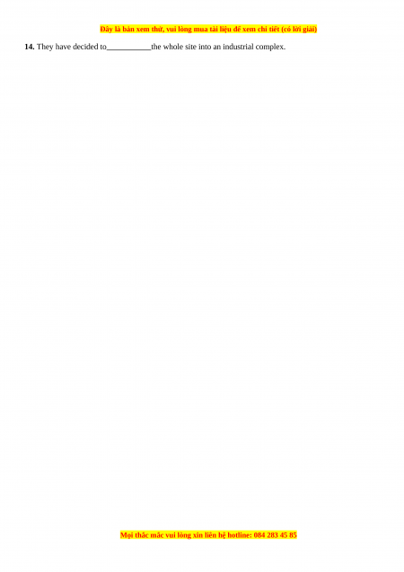 14. They have decided to the whole site into an industrial complex.
