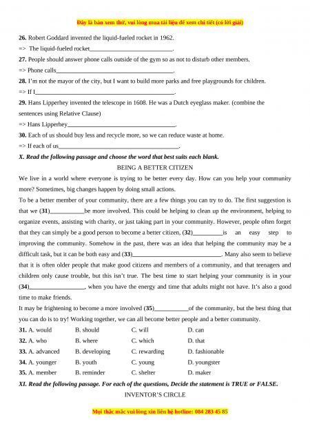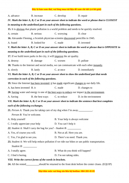 Chúng tôi đảm bảo đủ số lượng đề đã cam kết hoặc có thể nhiều hơn, tất cả có BẢN WORD,  LỜI GIẢI CHI TIẾT và tải về dễ dàng.