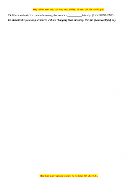 • IX. Rewrite the following sentences without changing their meaning. Use the given word(s) if any.