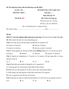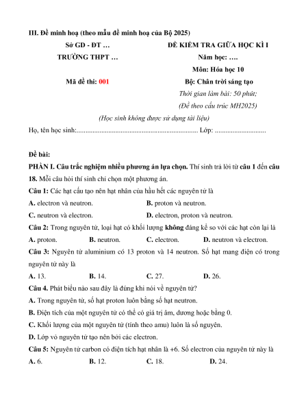 III. Đề minh hoạ (theo mẫu đề minh hoạ của Bộ 2025) Sở GD - ĐT …