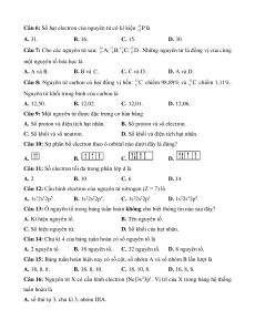 Câu 9: Một nguyên tử được đặc trưng cơ bản bằng