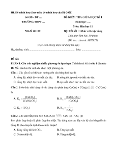 ĐỀ KIỂM TRA GIỮA KÌ 1 Môn: Hóa học 11