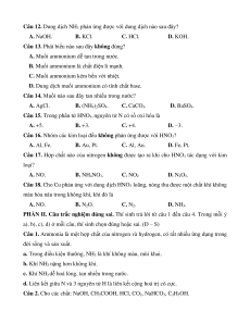 4 câu (1 điểm) trắc nghiệm Ammonia. Muối 4