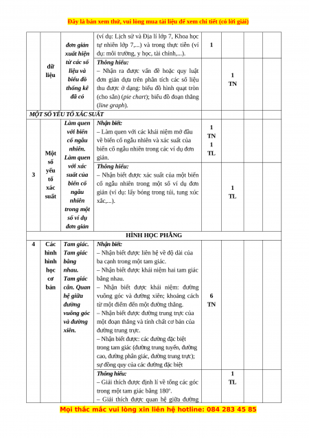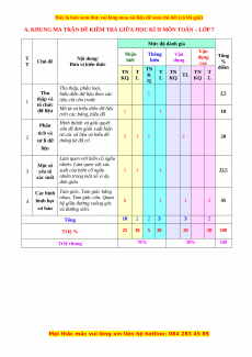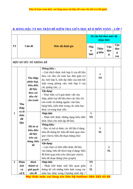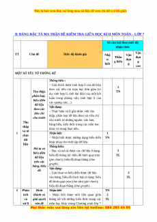 B. BẢNG ĐẶC TẢ MA TRẬN ĐỀ KIỂM TRA GIỮA HỌC KÌ II MÔN TOÁN – LỚP 7