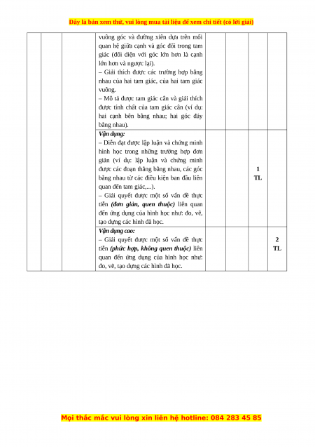 hệ giữa đường vuông góc cơ bản và đường xiên. Tổng 10 2 2 3 3 2 Tỉ lệ % 25 10 5 30 20 10 100 Tỉ lệ chung 70% 30% 100
