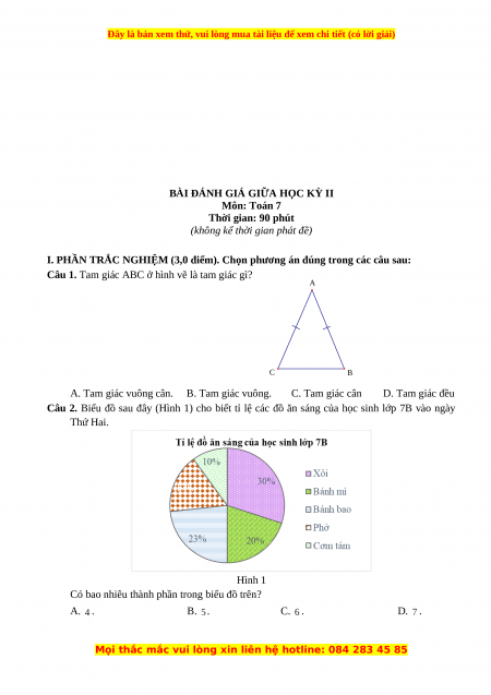Bộ 12 đề thi giữa kì 2 Toán 7 có đáp án