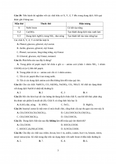 Câu 20: Tiến hành thí nghiệm với các chất hữu cơ X, Y, Z, T đều trong dung dịch. Kết quả được ghi ở bảng sau: Mẫu thử Thuốc thử Hiện tượng X Nước brom Có kết tủa trắng Y,Z Cu(OH)2