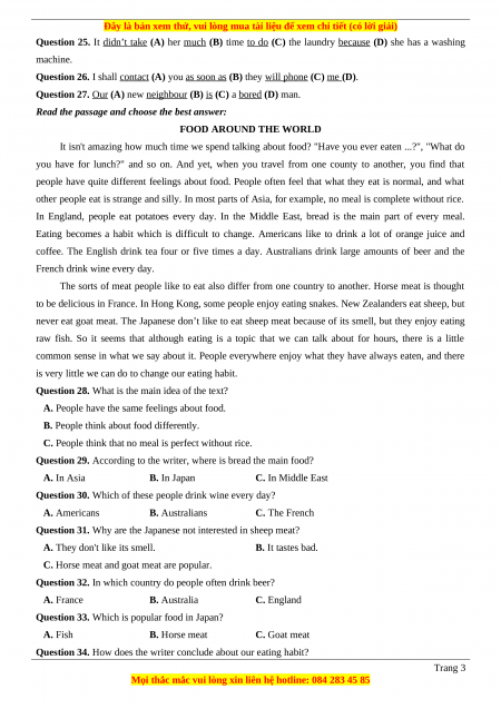 Question 34. How does the writer conclude about our eating habit? Trang 3