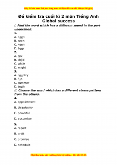 Đề kiểm tra cuối kì 2 môn Tiếng Anh Global success