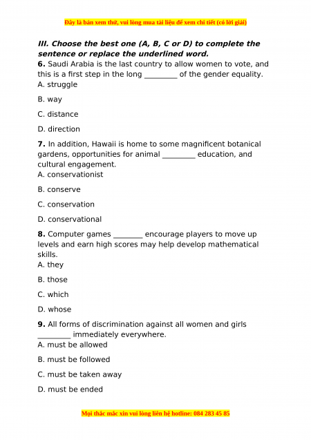 Chúng tôi đảm bảo đủ số lượng đề đã cam kết hoặc có thể nhiều hơn, tất cả có BẢN WORD, LỜI GIẢI CHI TIẾT và tải về dễ dàng.