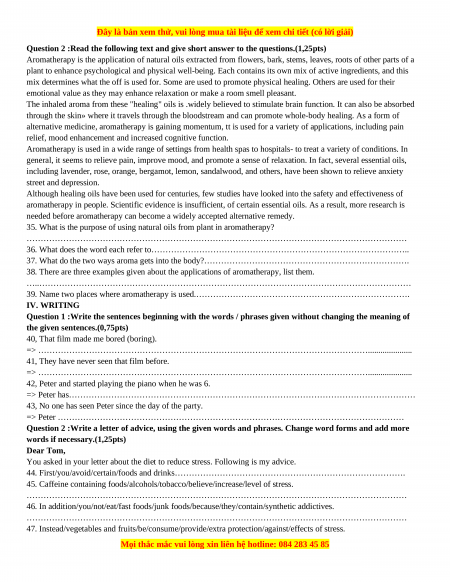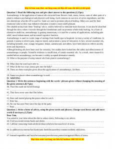 39. Name two places where aromatherapy is used.…………………………………………………………………. IV. WRITING