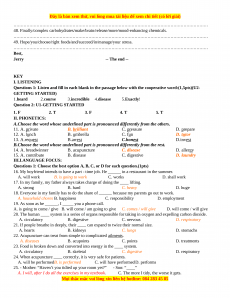 ……………………………………………………………………………………………………………………… Best, Jerry -- The end -- KEY I. LISTENING